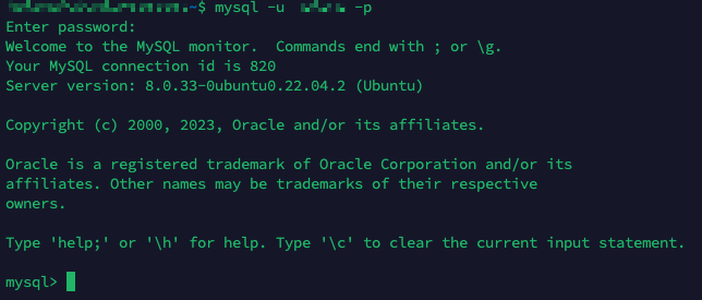 $ mysql -u {userID} -p