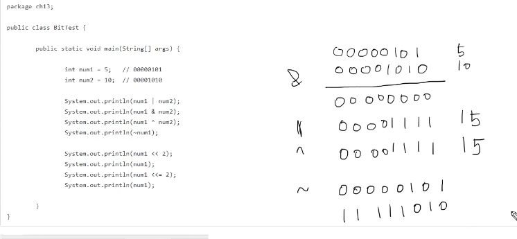 ㄴ 00001111 8비트짜리의 숫자 로 두개의 비트가 1인경우 1 을 반환하고 그렇지않은 경우 0을 반환한다. ( 00000101 & 00001111 = 00001010 )