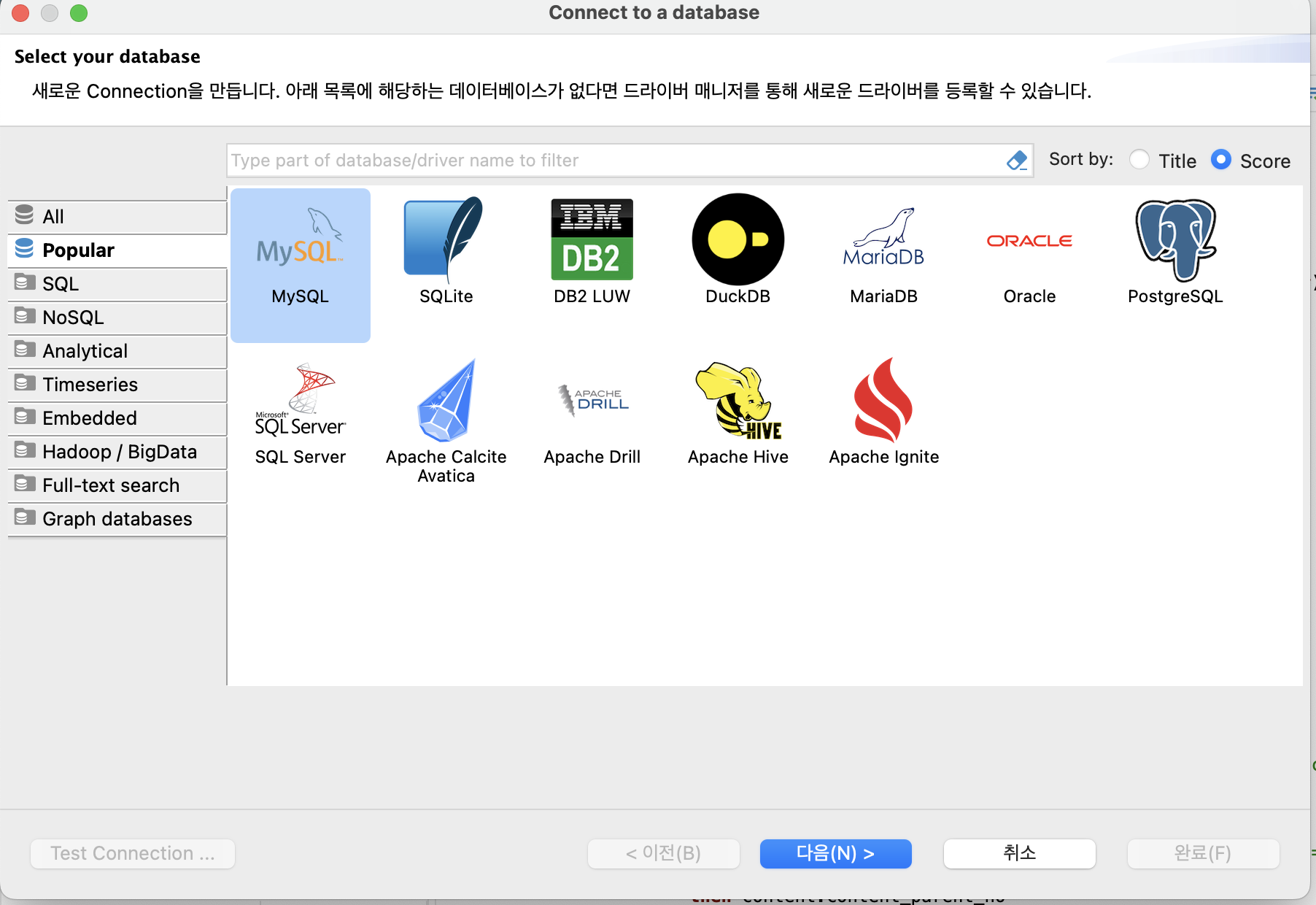 Password : Database의 계정인 user name에 해당하는 비밀번호 입력